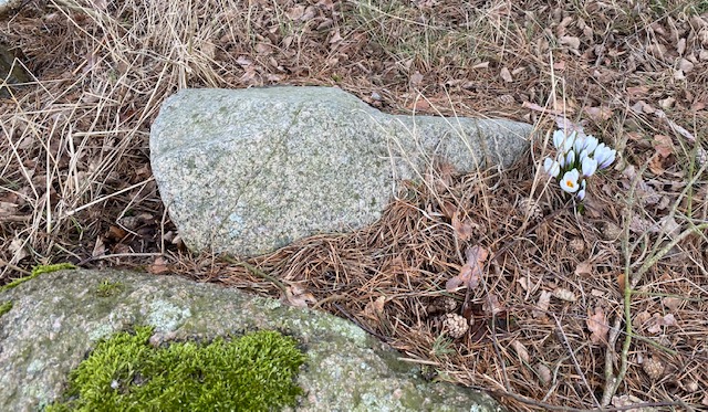 Han: Igår upptäckte vi den första krokusen här ute. Och vi tog rosévin till eftermiddagsdrink i växthuset. Men idag är en annan dag, känns inte det minsta som vår.