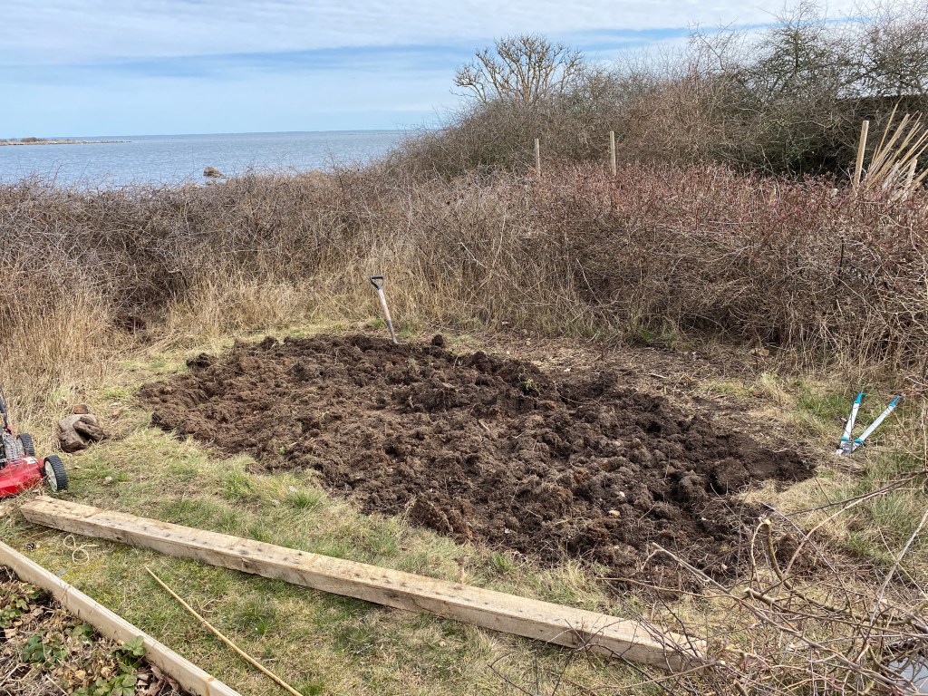 För min del hårt trädgårdsjobb hela dagen. Var mestadels mulet men ändå skönt vårväder. Och jag känner i ansiktet att nog solen måste ha tittat fram ibland. Och Hasse, vi behöver inte låna jordfräsen, stark kvinna klarar sig själv. Eller vad det nu heter 🙂