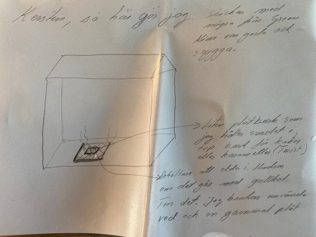 Han: Hon har som vanligt arbetat. Liksom pojkarna som nu lägger nytt tak på Margaretas kuliss. För egen del har jag mest gått omkring och lyssnat på radion. Därför börjar jag utanför udden: