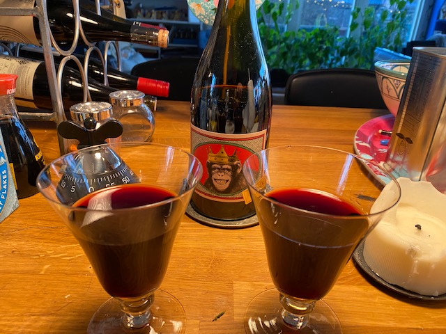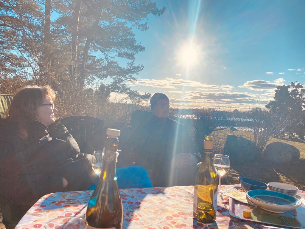 Och när vi förberett middagen satte vi oss i kvällssolen utanför Chateau Margareta med ett glas rosé. Så skönt! Min kusin Sten ringde och önskade Glad Påsk. Var glad över att ha fått tid för vaccinering. Sen kom Hasse och Kicki förbi och gjorde oss sällskap. Emma, deras dotter var också med en stund. Sen promenerade Uffe och Gunnel förbi och stannade till för en pratstund. En bra dag helt enkelt. Och middagen blev superb!