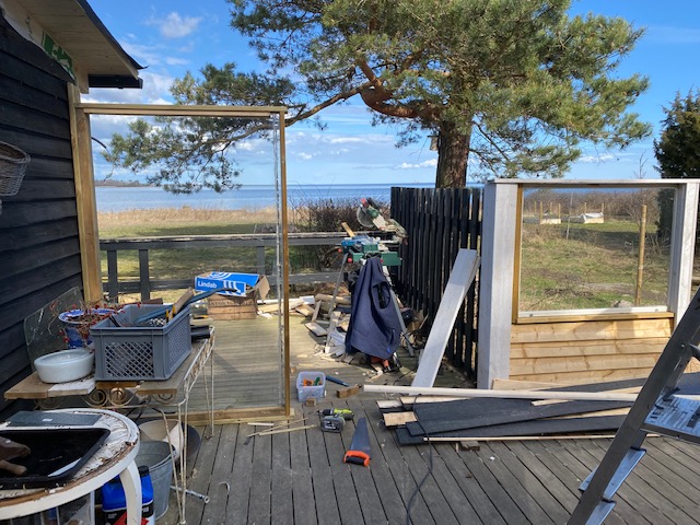 Jo föresten, när jag skulle gå över till grannhuset för att lämna en bok till vännen Neta hade jag behövt ett bärbart vindskydd. Kallt som tusan, hade bara en kofta på eftersom det är så nära. Fick snabbt sätta mig i solen med deras husvägg som vindskydd för att värma upp inför återfärden ett hus bort.