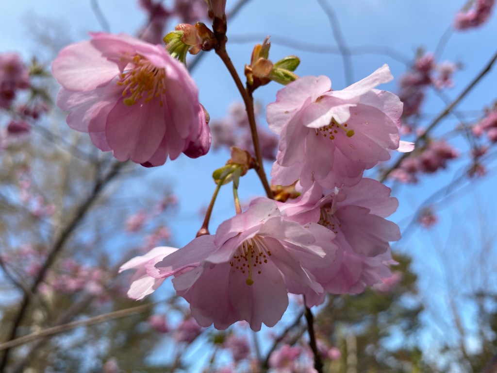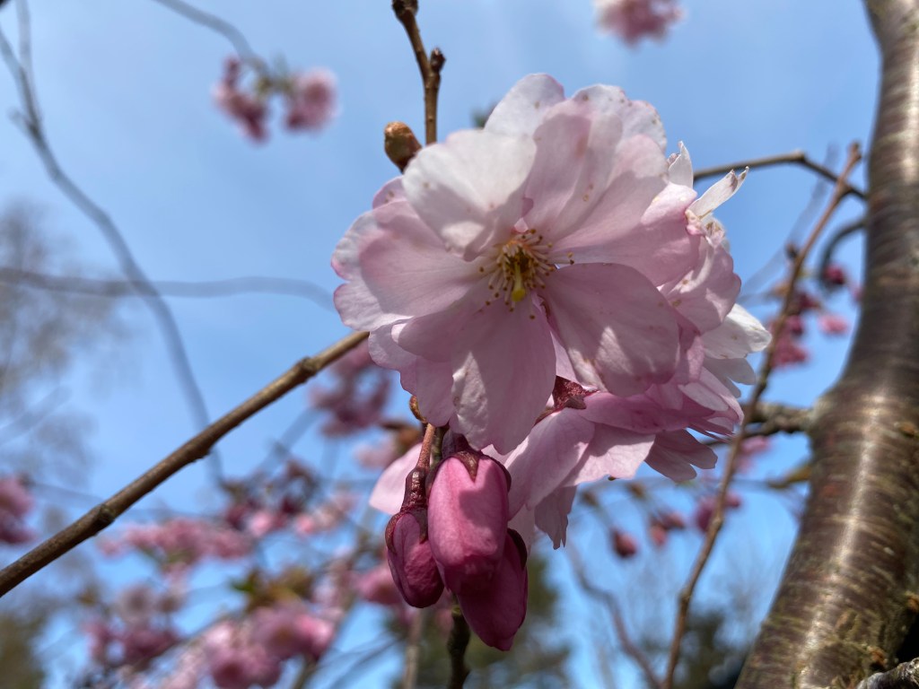 Körsbärsträdet har också börjat blomma för fullt, trots tuff beskärning i höstas. Vilket han påpekade häromveckan var dåligt… nu blir det lite ”körsbärsporr”: