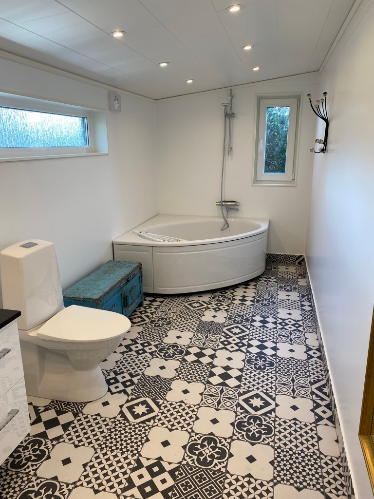 (Bortse från tvättställningen som skymtar i badkaret… den var dammig!)