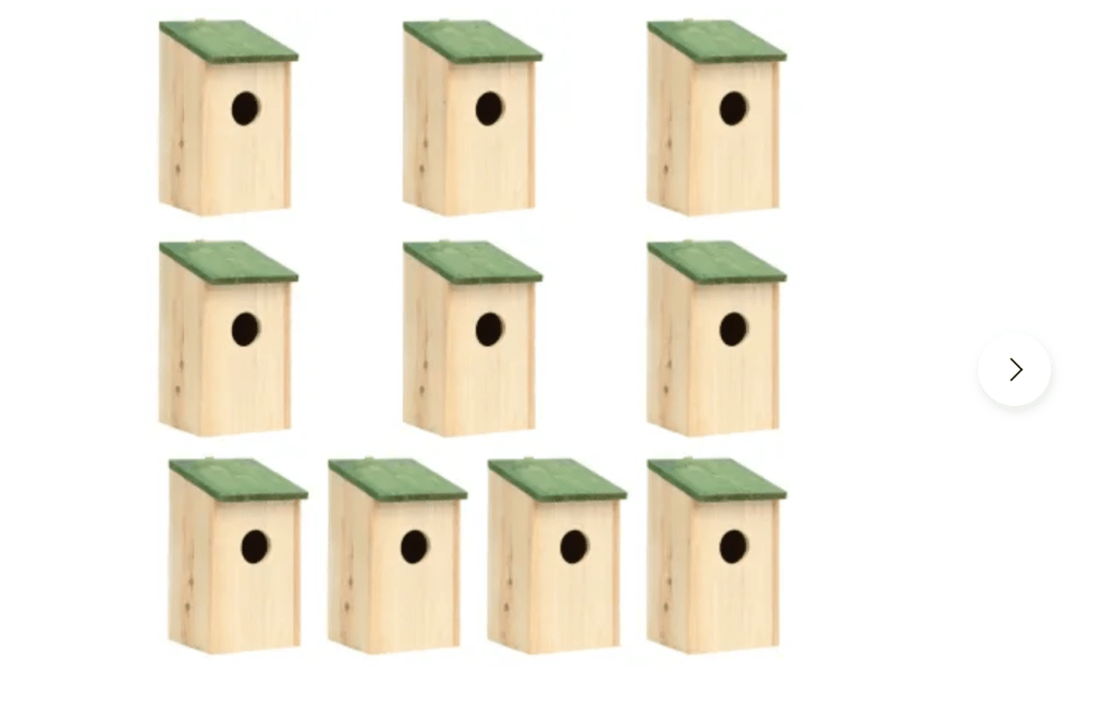Han: Efter att i veckor ha lovat mig själv att bygga ett antal fågelholkar har jag beställt 10 holkar från VidaXL.