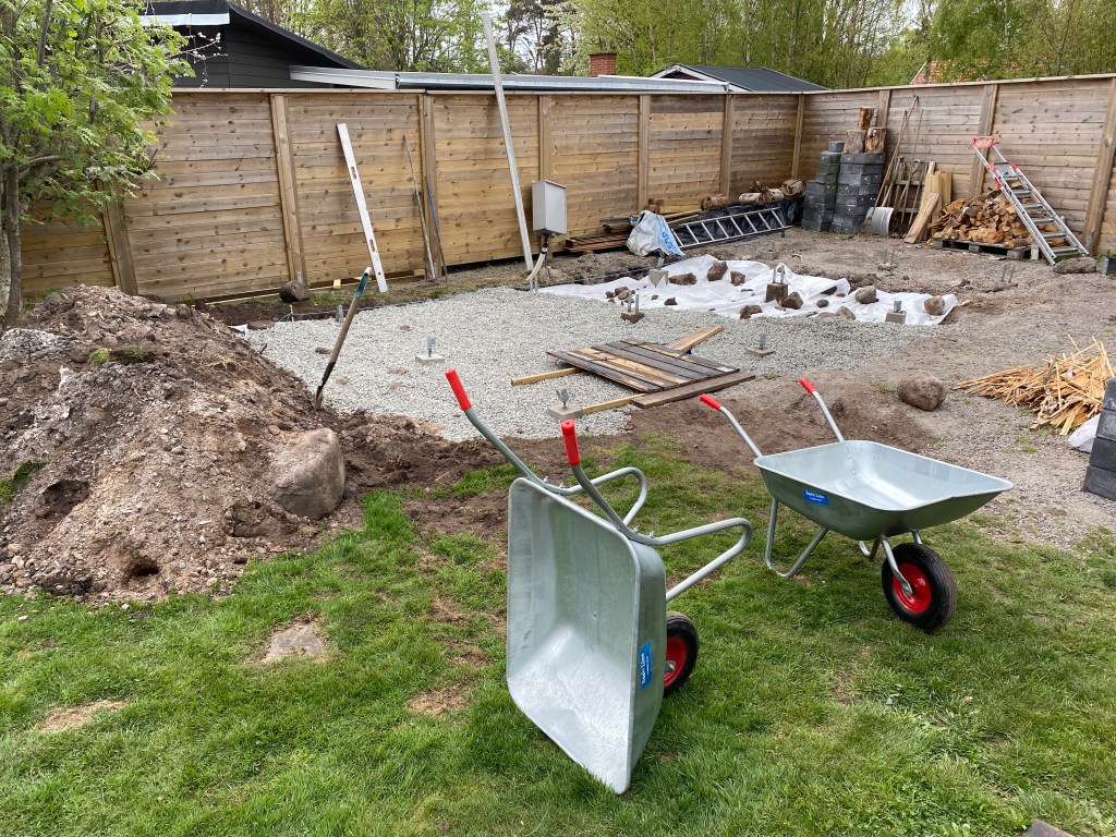 Hon: trots lite ont i den vaccinerade armen gick det alldeles utmärkt att köra skottkärra och kasta sten. Ser det som ett trevligt gympass med kompisarna på udden. Att de sedan dessutom är grillmästare gör ju inte gympasset sämre.