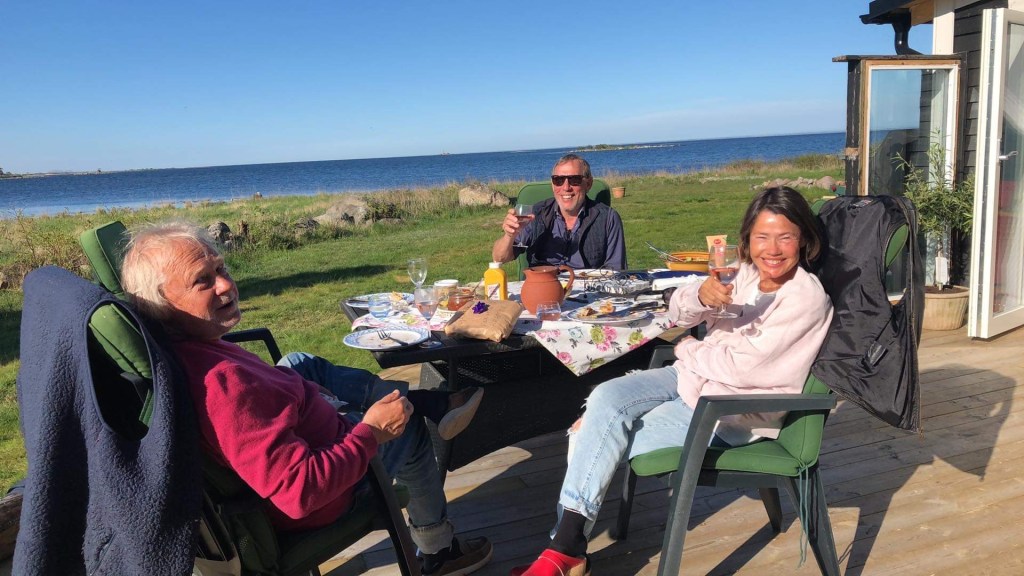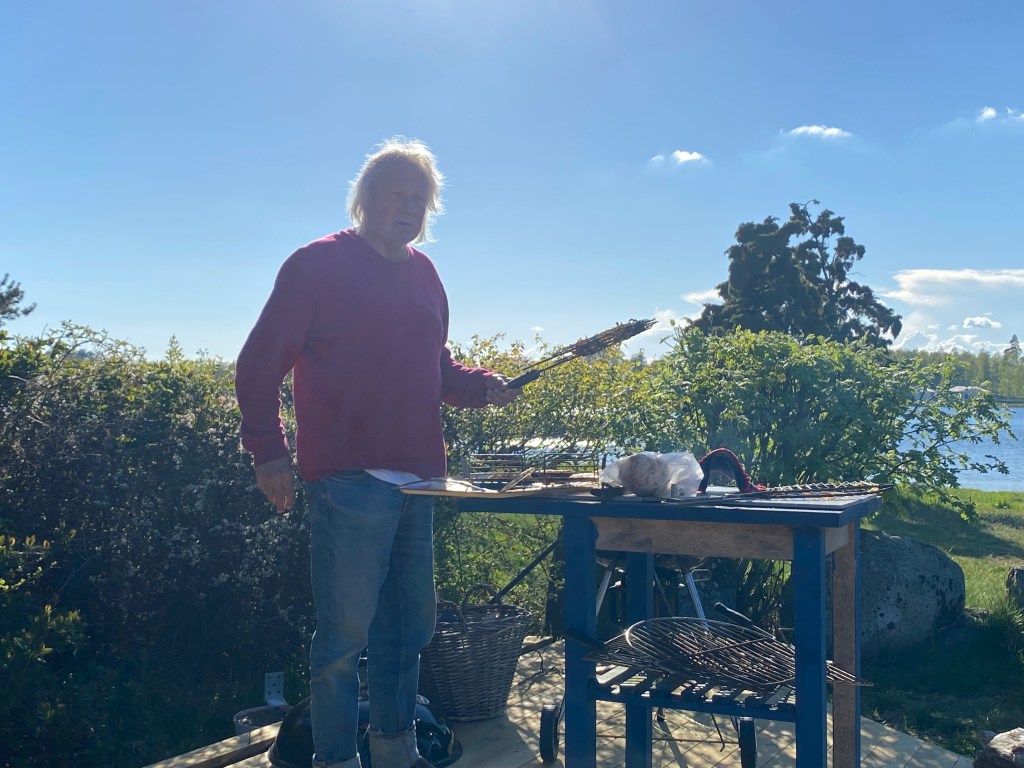 Tina och jag har känt varandra i 45 år, Blomman kom väl in i leken ungefär fem år efter det. Han betydligt senare, och hängde väl inte riktigt med i alla minnen som bollades vilt. Men höll humöret uppe ändå, och grillade hamburgare gjorda på färs från byggare Urbans ”hemodlade” kviga.