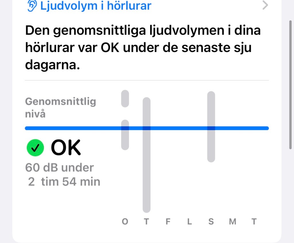 Dessutom vet siffernissan att jag har lyssnat på P1 även idag. Två timmar och 54 minuter. Och som om jag bett om hans åsikt noterar han att ljudnivån i mina hörlurar varit helt ok.