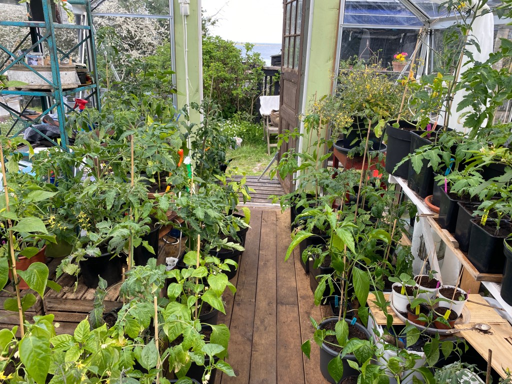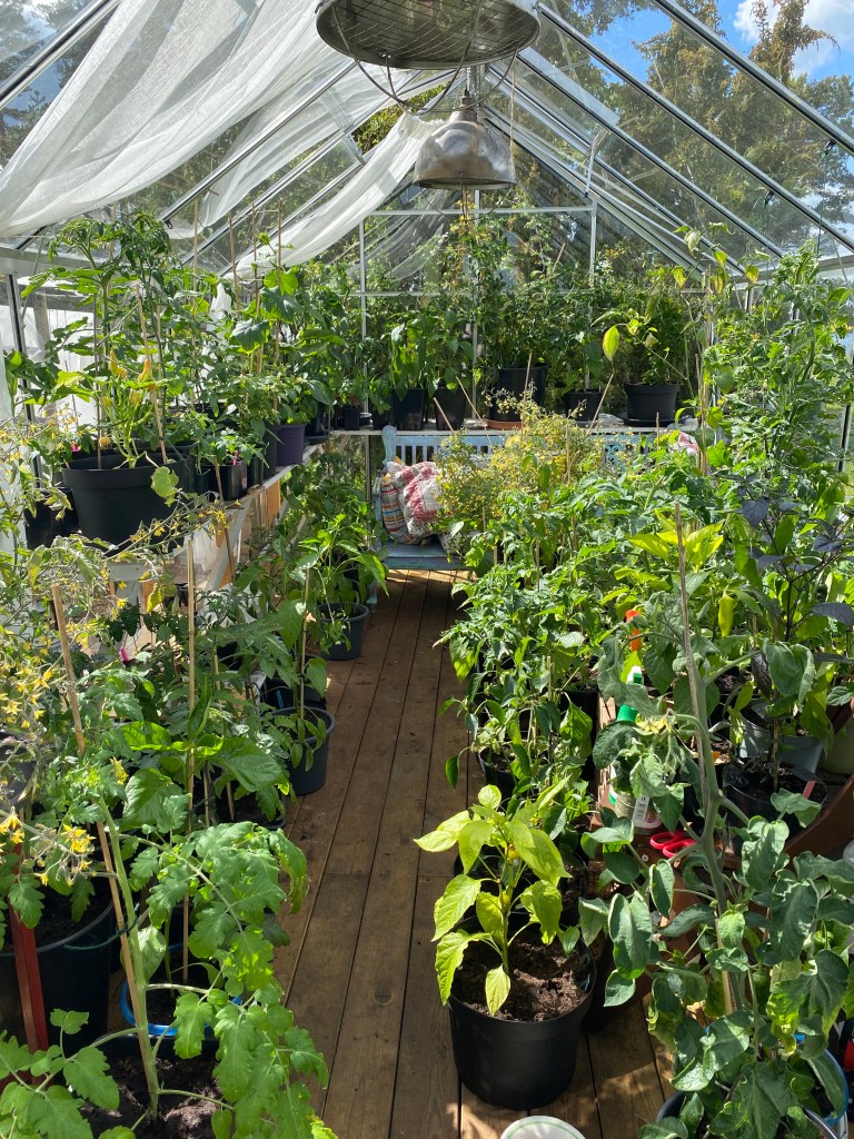 Alltså, så underbart i ditt växthus, där skulle jag kunna sitta många timmar och bara njuta, ja tomtgränser har vi ju erfarenhet av😂😂