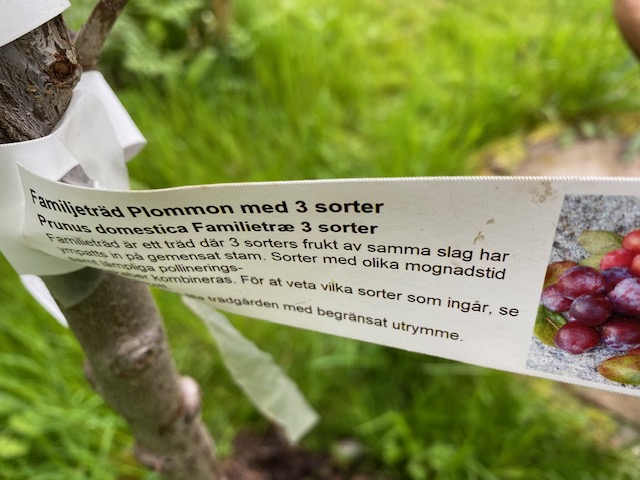 Nog om detta (Hon har också åsikter). Nu ska vi bestämma vart vår nya Familjeträd ska stå. Det kallas familjeträd för att det bär tre sorters plommon.