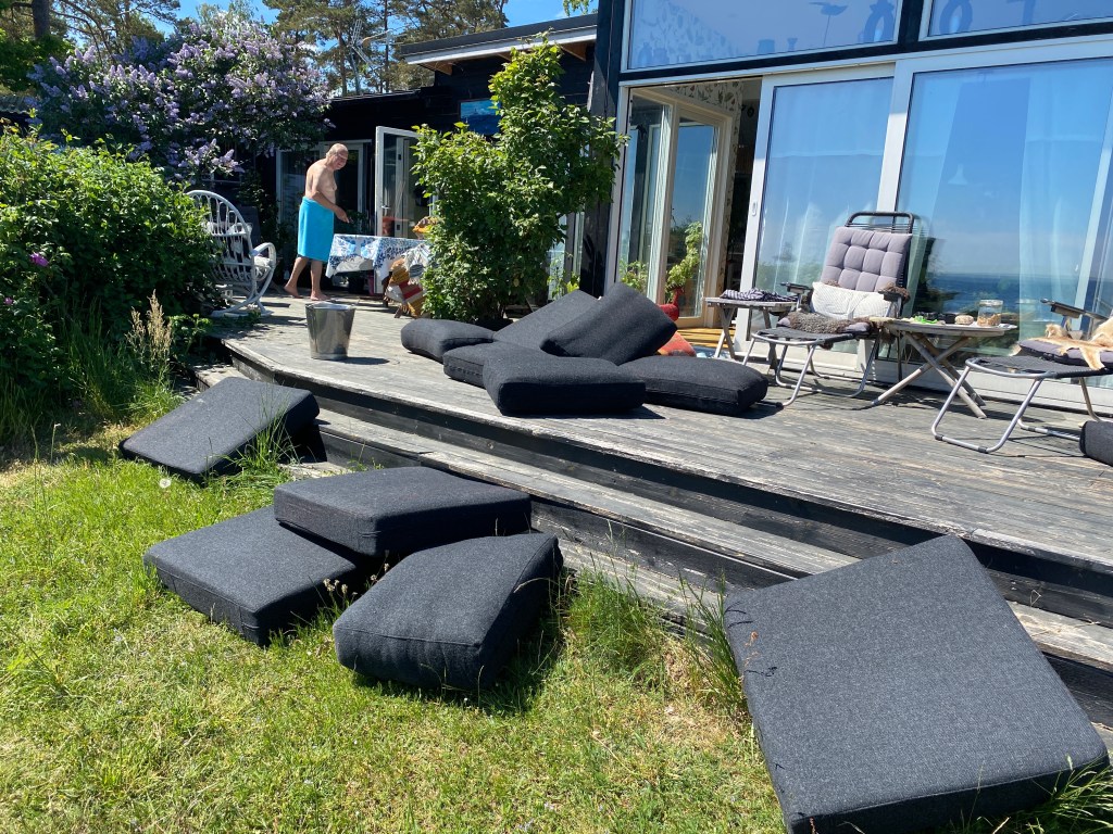 Så är det. Hon tycker att man ”måste” städa för att nån kan komma på besök. Jag tycker att städa är en av många sysslar på udden. Särskilt var det så när vi bodde på en byggarbetsplats där det fanns mycket annat att göra innan det var meningsfullt att städa.