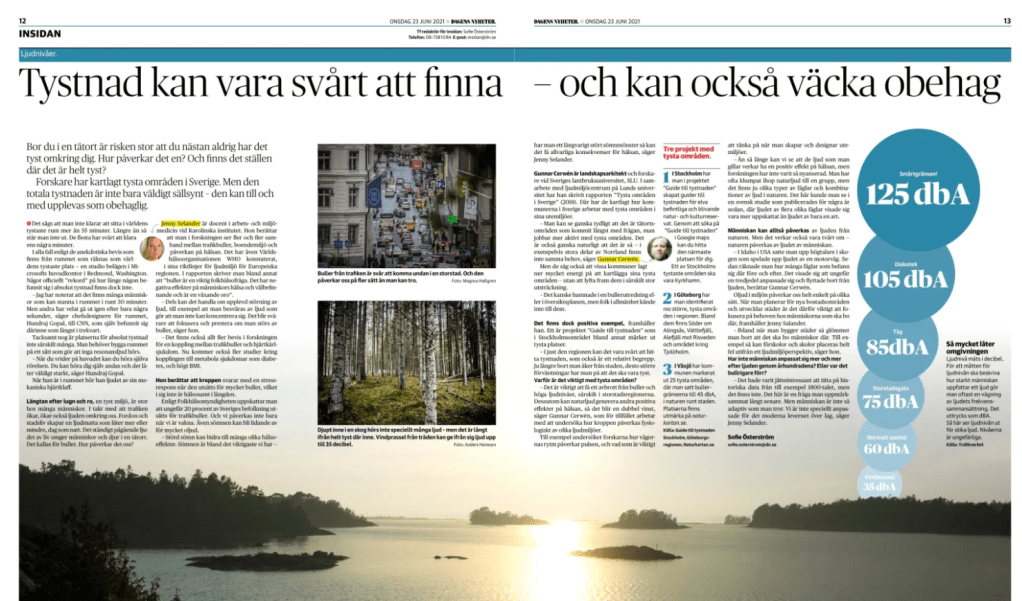 Vilket enligt en artikel i dagens DN motsvarar vår normala samtalston (65 dbA) – mindre än bruset på en storstadsgata (75 dbA) men mer än ”vindprassel” (35 dbA).