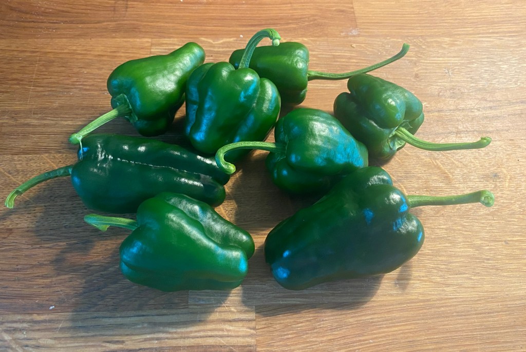 Och så några Padron, alltså de små paprikor spanjorerna gör Pimientos de Padron (stekta i olja med mycket salt) av. Jag tycker i och för sig att det är stora chilis. De kallas också för Rysk Roulette eftersom en del kan vara väldigt starka. Mina egenodlade brukar vara starka varenda en. Så varning Lena!