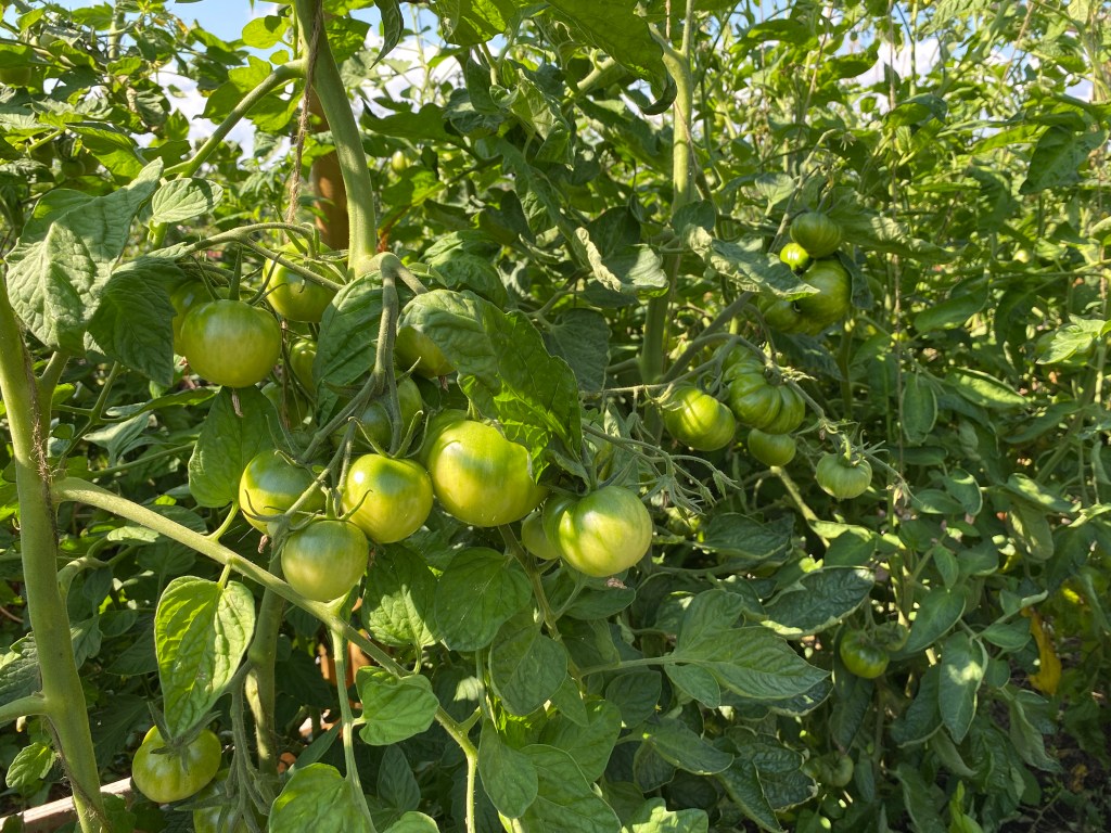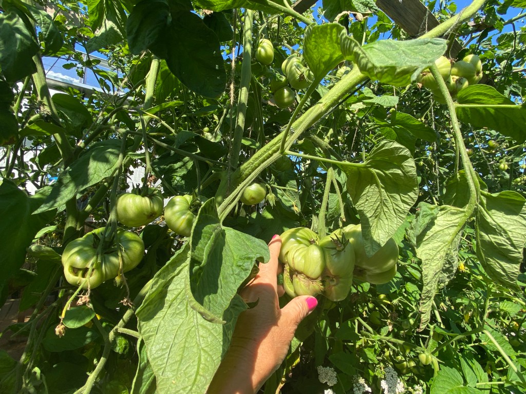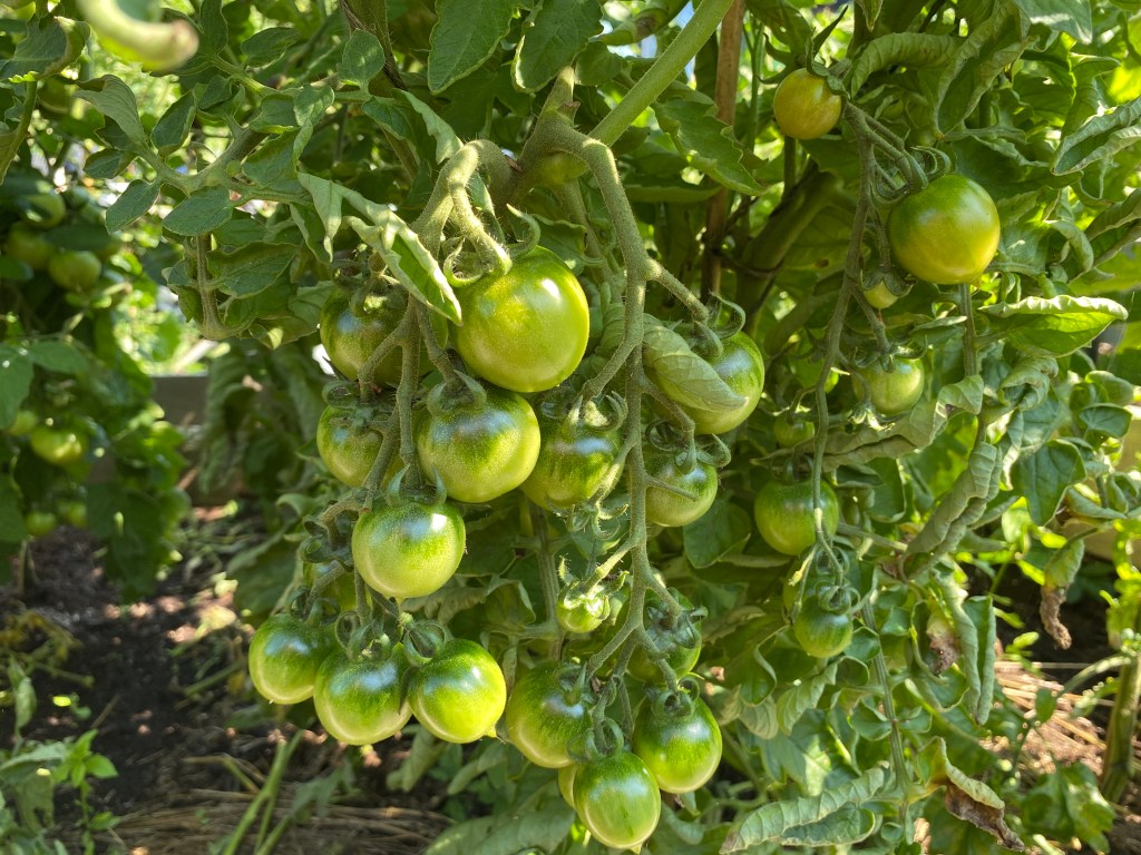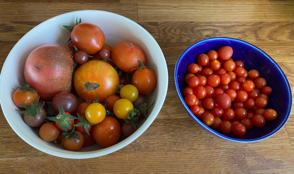 Hon: jobbade undan jobb jobb inatt, och barnen ska laga middagen (lyx!), så idag har jag äntligen kunnat ägna mina plantor lite uppmärksamhet. Och nu har tomaterna verkligen kommit igång. Var faktiskt en hel del att skörda. Fast de de flesta är fortfarande gröna, men det kommer att gå fort nu. Och de är många, ja givetvis blev det inte färre i år, vilket var tanken. Kunde inte motstå att testa lite nya sorter. Faktum är att jag faktiskt struntade i en hel del från förra året, så helt galen är jag inte, inte helt…