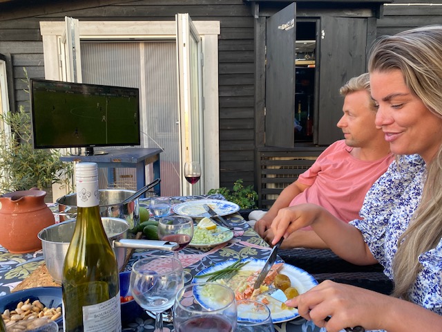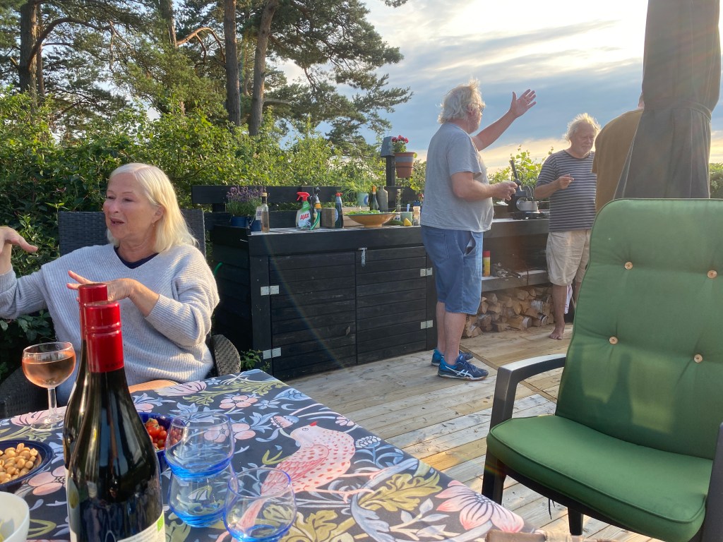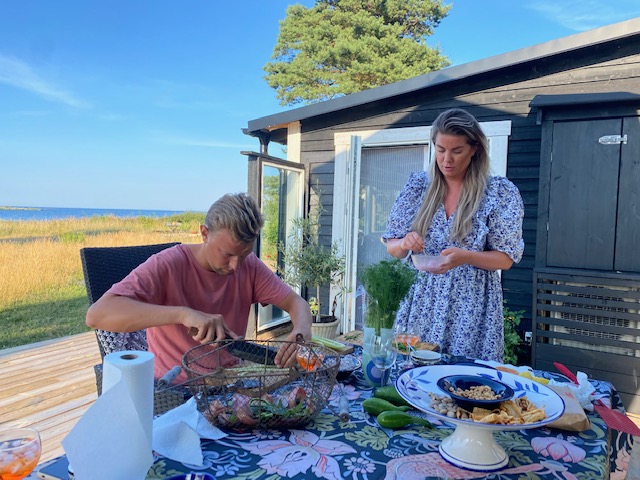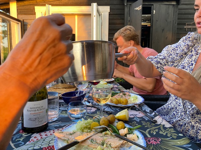 Och kulturupplevelserna fortsatte på kvällen. Som framgått passerar det ett antal gäster här på udden just nu. Och den stora belöningen för värdparet är när gästerna står för middagen. Igår var det alltså Erik & Amandas tur. Och det är inte varje dag vi har en kock ”känd från tv” på besök.