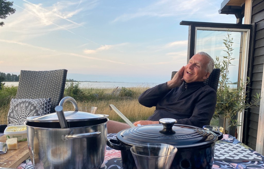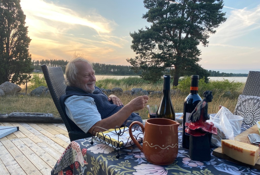 Hon: ja så himla roligt att träffa Gunnar igen, senast vi sågs var i november förra året då Malin fortfarande fanns med oss. Att han ändå kom till Udden som vanligt i sommar kändes väldigt bra, och jag tror Malin var med oss hela kvällen, om än inte fysiskt!