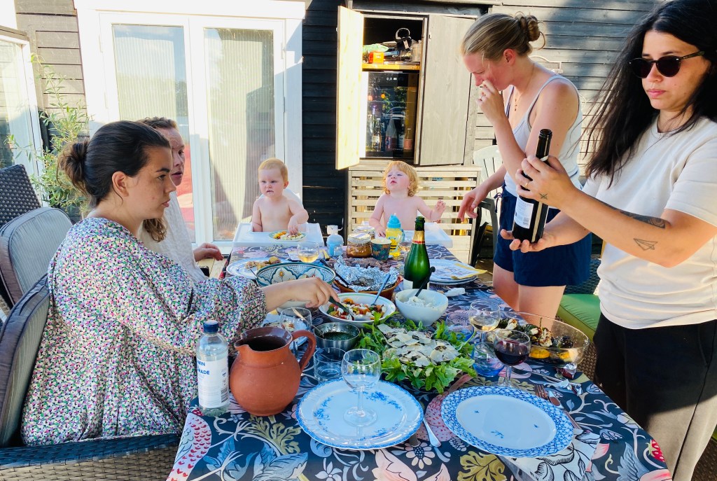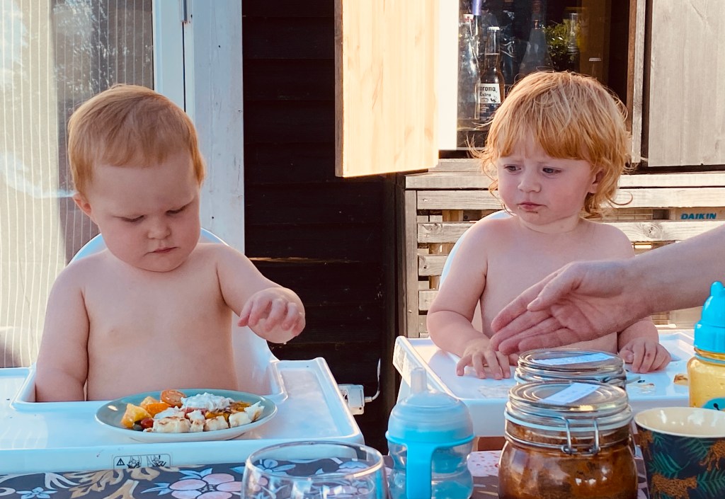 Hon: ja, fast efter ett och ett halvt dygn på annan ort har jag inte haft en sekund över för att kolla hur börsen gått idag, känns lite oroligt förstås. Men dagen har gått åt att vattna och skörda. Samt pussa lite på barnbarnet som bara halvt om halvt har tid för mormor. Alice och mammorna har kompisar på besök. Det är roligt tycker jag, och både Alice lilla pojkvän, också en rödtopp för övrigt, och mammornas väninnor är himla trevliga dessutom. Ja, jag har inte kunnat låta bli att hänga därborta en hel del också.