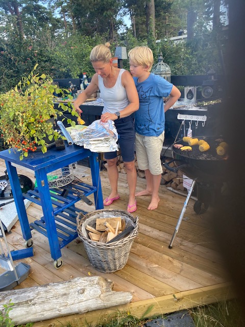 Hon: ja det var väldigt gott Emil. Ikväll står jag för middagen i hus 1. Vi har min son Adams svärföräldrar Neta och Patrick här över natten. Dessutom ska vi snart bli farmor och mormor för första gången, vilken dag som helst faktiskt, så vi är ju praktiskt taget släkt. Känns väldigt bra. Men ikväll pratar vi om helt andra saker. Trevligt har vi, men mer om detta imorgon!