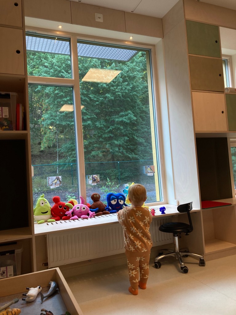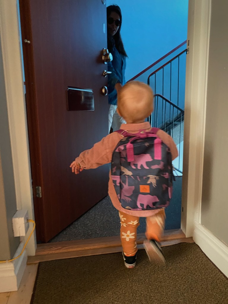 Hon: ja idag börjar mormors kavata lilla tjej förskolan.