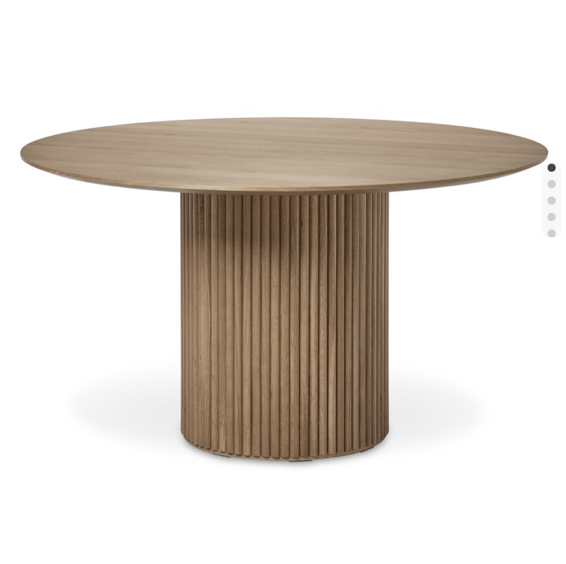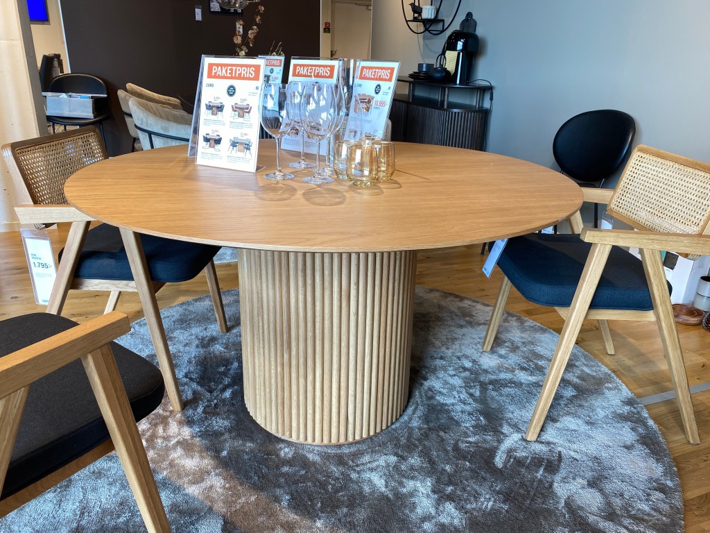 Hon: vi vill ju kunna sitta lite fler runt bordet även här nere på Udden, inne i hus 1, där vårt runda bord är lite för litet (110 cm/diameter). Så idag gjorde vi slag i saken. Större bord är inköpt!