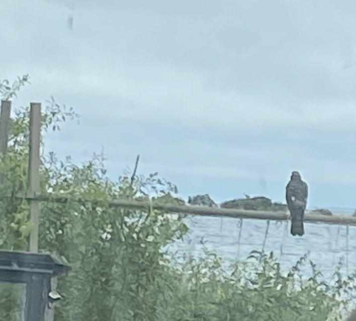 Okej, men nu satt den här besökare alltså bara där med ryggen mot mig tills den plötsligt lyfte från hennes tomatspaljé och försvann.