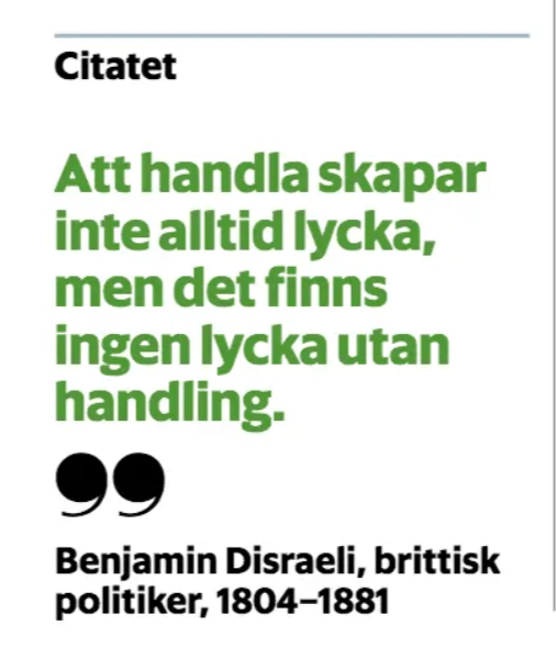 ”Att handla skapar inte alltid lycka, men det finns ingen lycka utan handling”. Så sa den brittiske politikern Benjamin Disraeli, citerad ur Barometerns dagliga citatsamling. Visserligen sa han det på engelska, men den svenska översättningen får en roligare innebörd i dagens kontext.