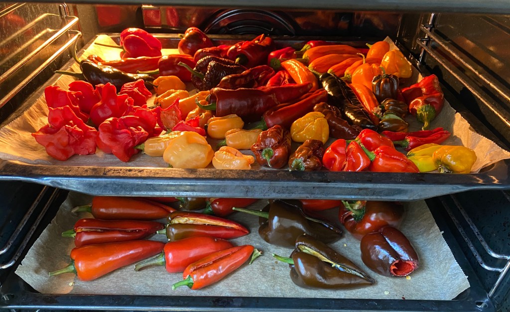 Men först skördade jag en hel del chili som fick åka in i ugnen på torkning. Så glad för all fin feedback jag fick på etiketterna igår, tack! Har även fått en hel del förbeställningar, så nu får jag se till att inget går till spillo.