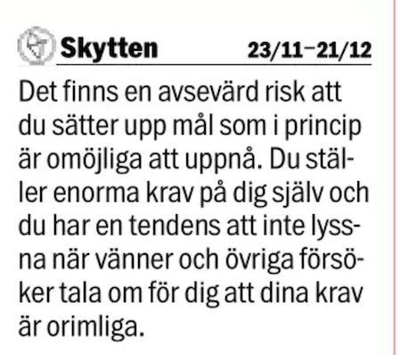 Först ett statement: Jag har aldrig trott på horoskop. Särskilt inte sedan jag bosatte mig på udden. Dagens utlåtande om min dag säger allt.