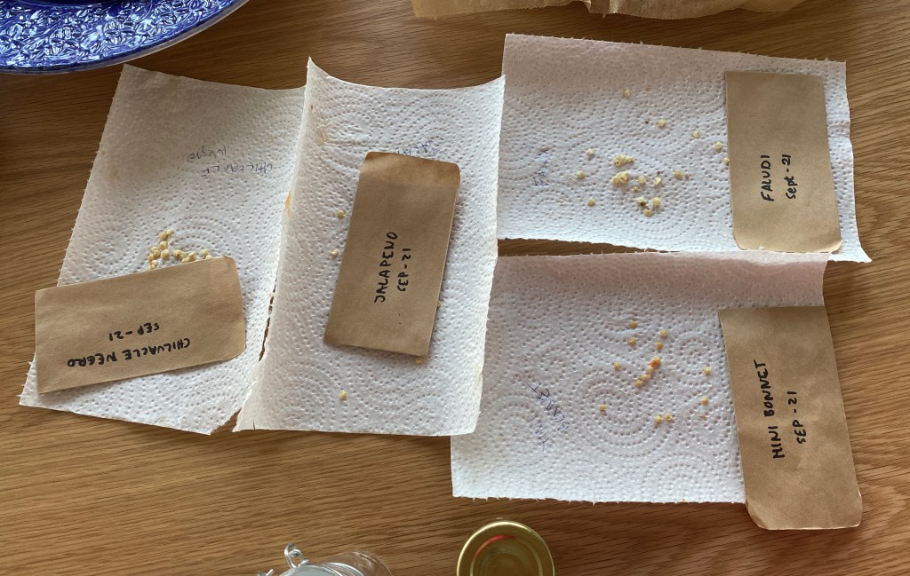 Idag kom mina frö-kuvert. Har tagit sjukt lång tid, via Kina, och kostat två och en halv gång så mycket som det skulle på grund av tullavgifter. Som ingen sa något om! Glad ändå, börjat lite lätt, speciellt med de chilis som är på sista refrängen och som det knappt finns några kvar att ta fröer ifrån…