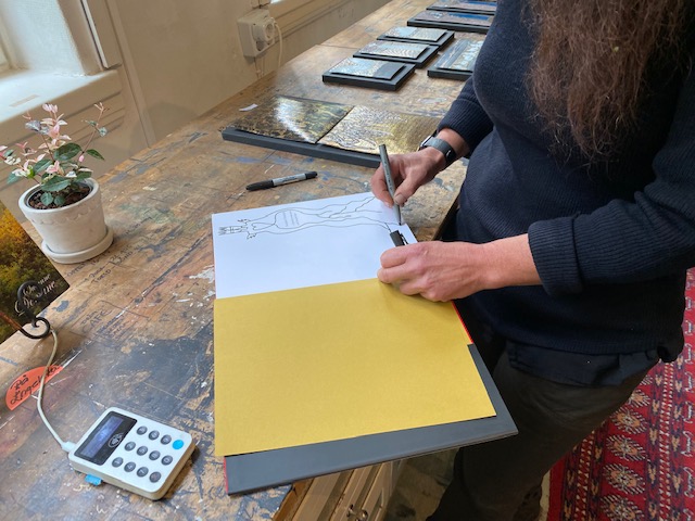 Hon: ja fantastiskt ställe och fantastisk konstnär och person. Kul att prata med henne var det också. Dessutom älskade hon träd lika mycket som vi. När de hade huggit ner ett träd längs stigen hon gick var dag, då hade hon känt det som om det var henne de stuckit ner. Kände helt igen mig!!