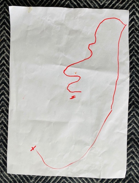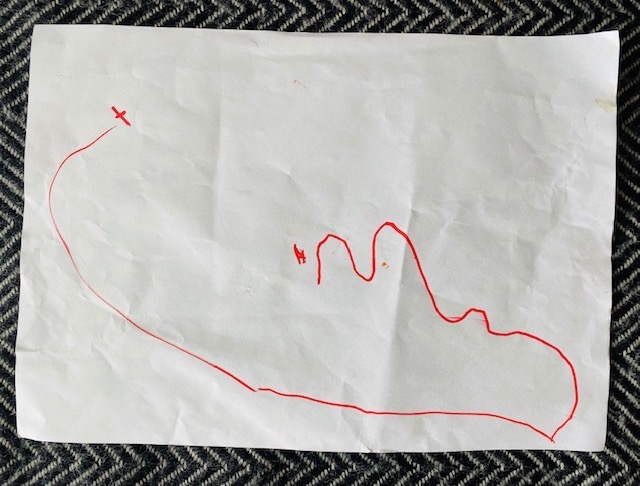 Nu någonting helt annat. Häromdagen låg den här teckningen i vår brevlåda. Det fanns ingen avsändare. Av någon anledning utgick från att det ett meddelande till mig, inte till henne.