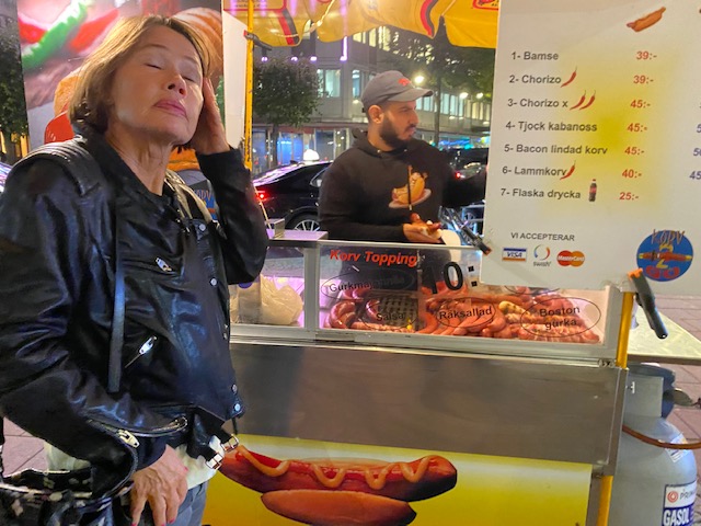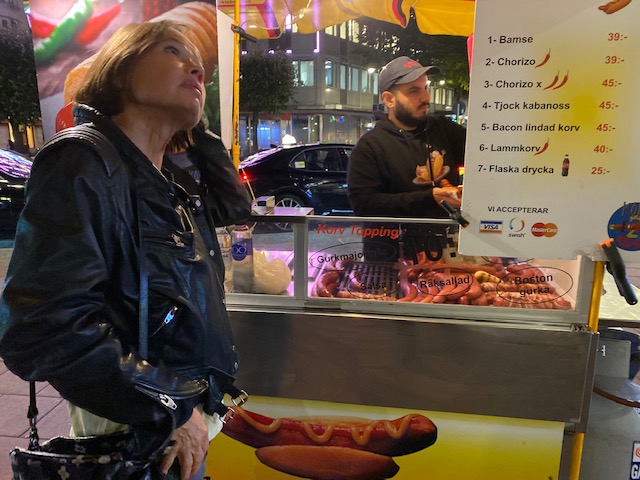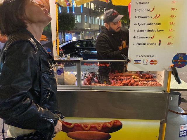 – Vid korvkiosken på Stureplan som återuppstått bara för hennes skull: