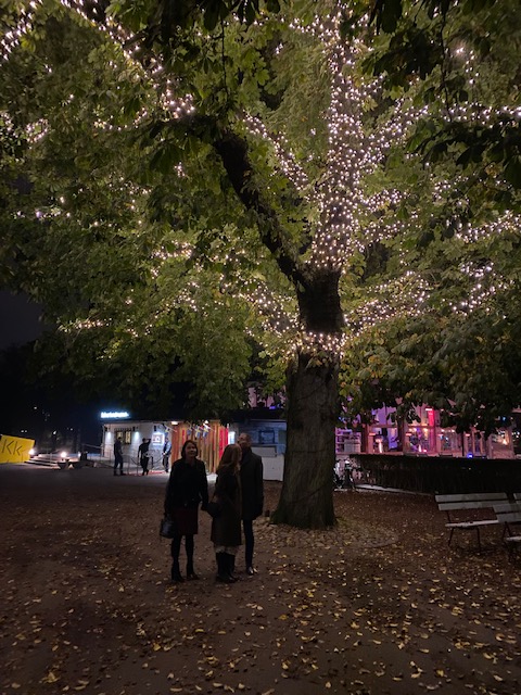 Han: Va?! Fanns det andra brudar på dansgolvet. Jag hade bara ögon för våra medhavda fruar. Och även trädet utanför baren var vackert dekorerat. Det tyckte även två uppsluppna kvinnor som vid närmare eftertanke bar mer kläder än alla de dansanta flickorna på dansgolvet.