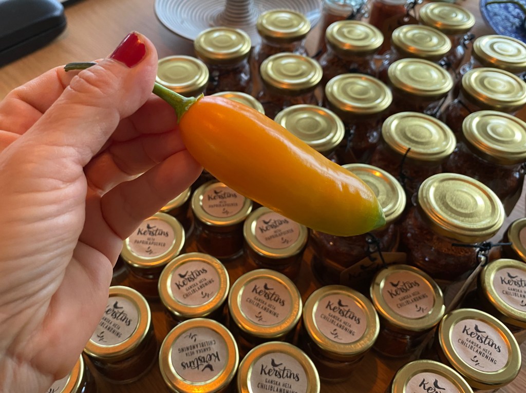 Hon: idag kom de, resterande etiketter till mina kryddor, hurra!!! Nu ska jag bara bestämma hur många och vilka storlekar jag tar med upp till Stockholm på torsdag. Några är givna eftersom de är beställda sedan länge, och några har jag dessutom lovat varsin stor burk av Espelette. De är jag annars lite snål med. Jag har alldeles för få, kylan kom för fort och alla Espelette-plantor står ute på friland. Hoppas hoppas de mognar, men det är ytterst tveksamt. Ska gå ner till +2 i natt, vill det sig illa kanske det till och med blir frost…