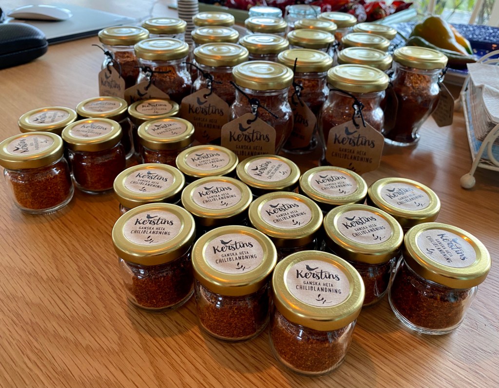 Och så har jag beställt några utan produktnamn till sådant jag bara har lite av. Ketchup och Hot Sauce till exempel. Jag har också ganska många Aji Amarillo på gång i växthusen så kanske jag maler lite av den som egen krydda också (finns med i blandningen), om Espeletten tryter. Den blir det också en väldigt god chilikrydda av.