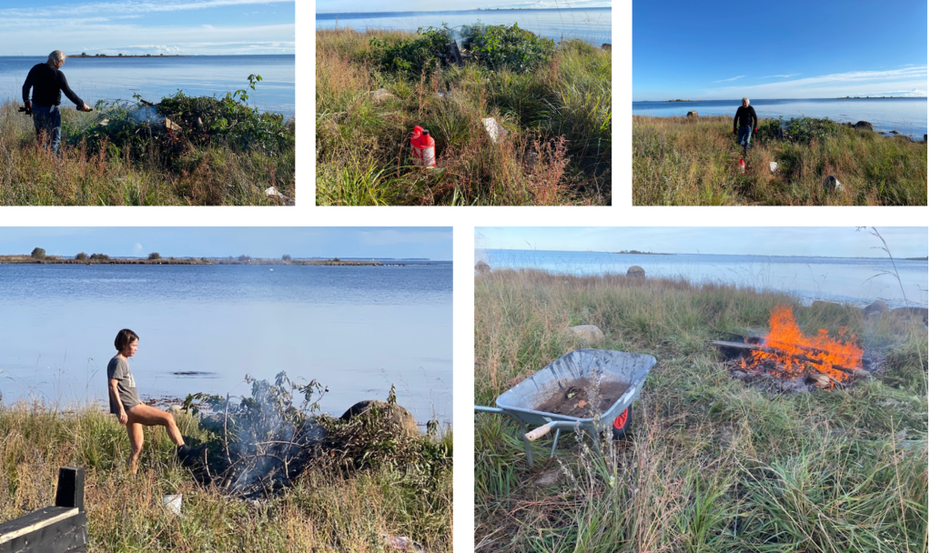 Och det ena gav det andra. Eld och vatten är motpoler. Hon blev varm av elden och drogs till havet. Fjolårets sista dopp i 14-gradigt vatten, vilket hon avstår från i år. Chiliodlare är som andra bönder. De jobbar när vi daglönare roar oss med att titta efter gäss och drivved.