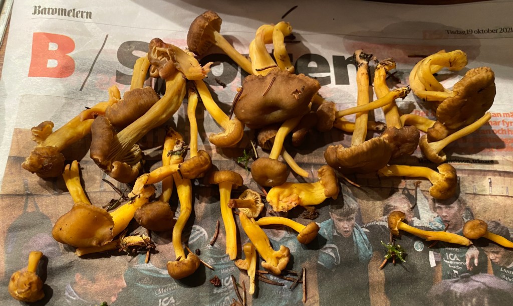 Inte rört mig på tre dygn, typ, hoppade av uppe vid vägen och gick genom skogen hem, började skymma, lite läskigt… men var tvungen kolla mitt Trattis-ställe. Såg inte så bra, hade dessutom solbrillor på. Fick ändå med några hem: