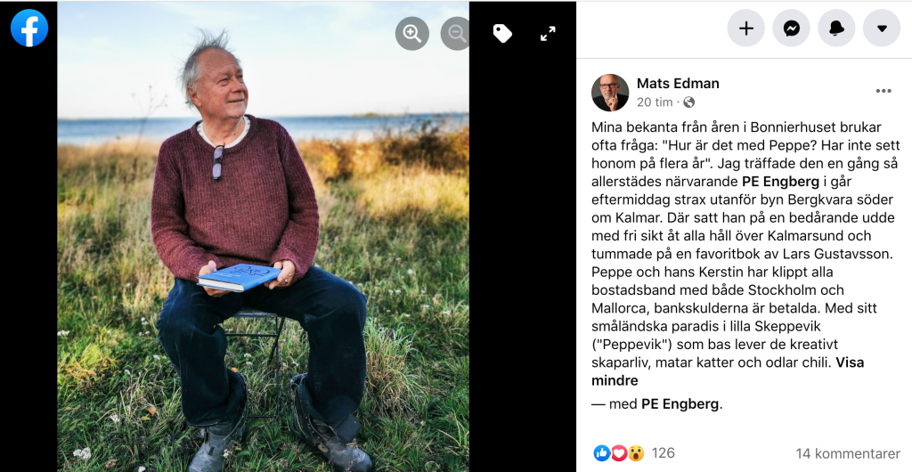 Allt oftare blir gubben rörd. För inte säga skakad. Skrev häromdagen om min kompis Mats Edmans besök på udden. Han kvitterade min spark mot skenbenet med en kommentar på Facebook som just nu genererat 126 tummar upp.