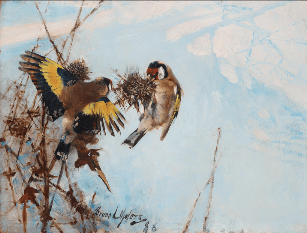 I förbigående nämner Ekman hur både Wrights och inte minst Liljefors dödade fåglar för att föreviga dem: Bröderna älskade fåglarna och sköt dem. Bytena arrangerades i positioner för att målas av. Likadant gjorde den gemytlige Bruno Liljefors. Han hade ett uthus med rovfåglar i bur. Fåglar som han skulle måla sköt han och satte opp dom i till exempel träd med utspända vingar och en liten bytesfågel i grenverket. Det var ett rangel av ståltråd, brädbitar och spetsade pinnar som höll illusionen oppe. Men det ser man inte på tavlorna. Där blänker ögon och fjäderskrud och där gnistrar det om päls och snö. Så är det. Det är konst…
