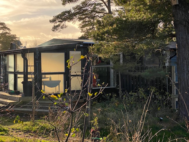 I kväll är det fullmåne – den ljusa fläcken till vänster. Solen som mitt liv kretsar kring till höger i bilden. Hon har just påpekat att det är min tur att laga middag. Det får bli något enkelt: Det får bli nåt enkelt – abborre från Blomlöfs i vitt vin med kantareller. Som vanligt bearbetad med vår bästa kökskniv – som vi för övrigt fått från dagens pristagare efter en av hans många utlandsreportage: