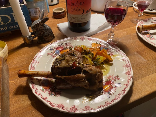 För vacker för att bli mat. Det får bli lammskuldra till välkommen-hem-middag, en rätt som alltid påminner oss om Mallorca. Men denna kommer från Magdegärde gårdsbutik.
