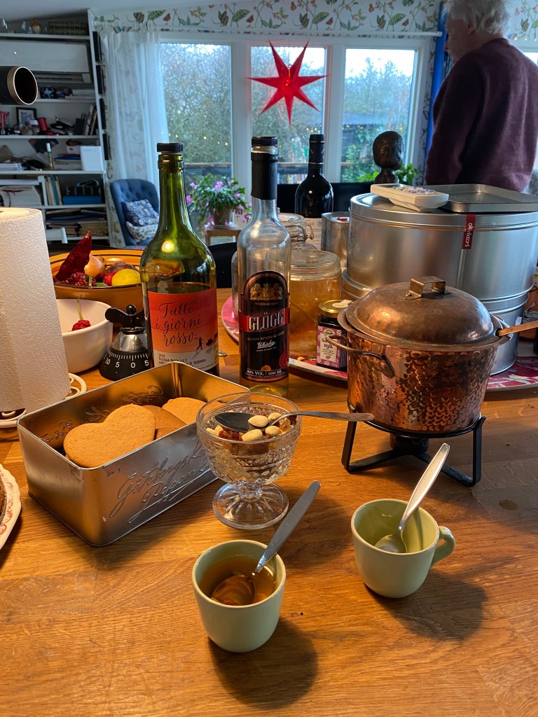 Bestämmer snabbt att vi börjar smaka av årets glögginköp redan vid lunch, och intar sedan ryggläge i soffan med paddan och en bok. Men jag har faktiskt gjort lite nytta före dess, en saffranskaka! Lussebullar har jag dock inte hunnit baka än.