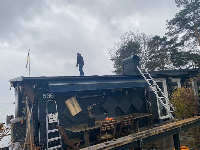 Jo det är sant. Alexander från Nordpolen (företaget heter så) var här och mätte upp våra tak, vinklar och solsidor. Vi fick beröm för att vi redan investerat i bra tak (tack Markus och Goof!) och efter några minuter hade alla hårt arbetande chips i Alexanders dator räknat ut att udden är som gjord att bli självförsörjande på el.