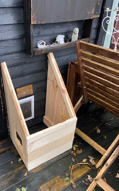 – Och idag stod stjärnorna rätt och det blev dags att bygga en sluss till kattluckan (stängd i lovart, ingång på läsidan).
