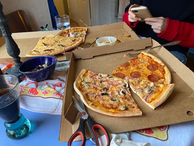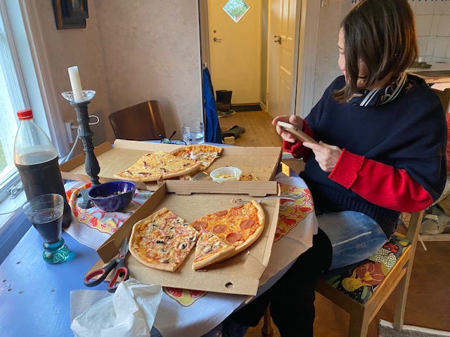 Och så beställa pizza, vilka var det nu vi skulle ha…