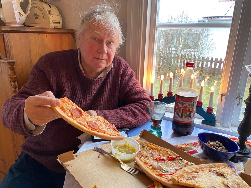 Men det var det värt! Julmust och 4 sorters pizzarester från Turin Pizzeria i Gökalund. Passar på att tacka Ancy och Håkan och Tina från Södra Kärr (bakom kameran) för en trivsam kväll och alla ni andra för glada tillrop.