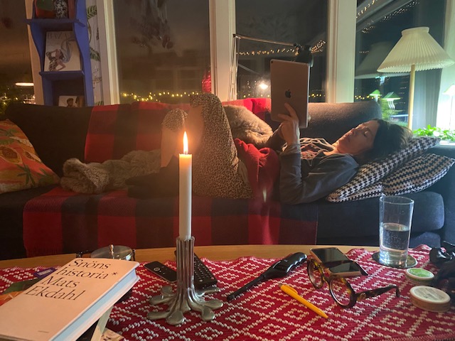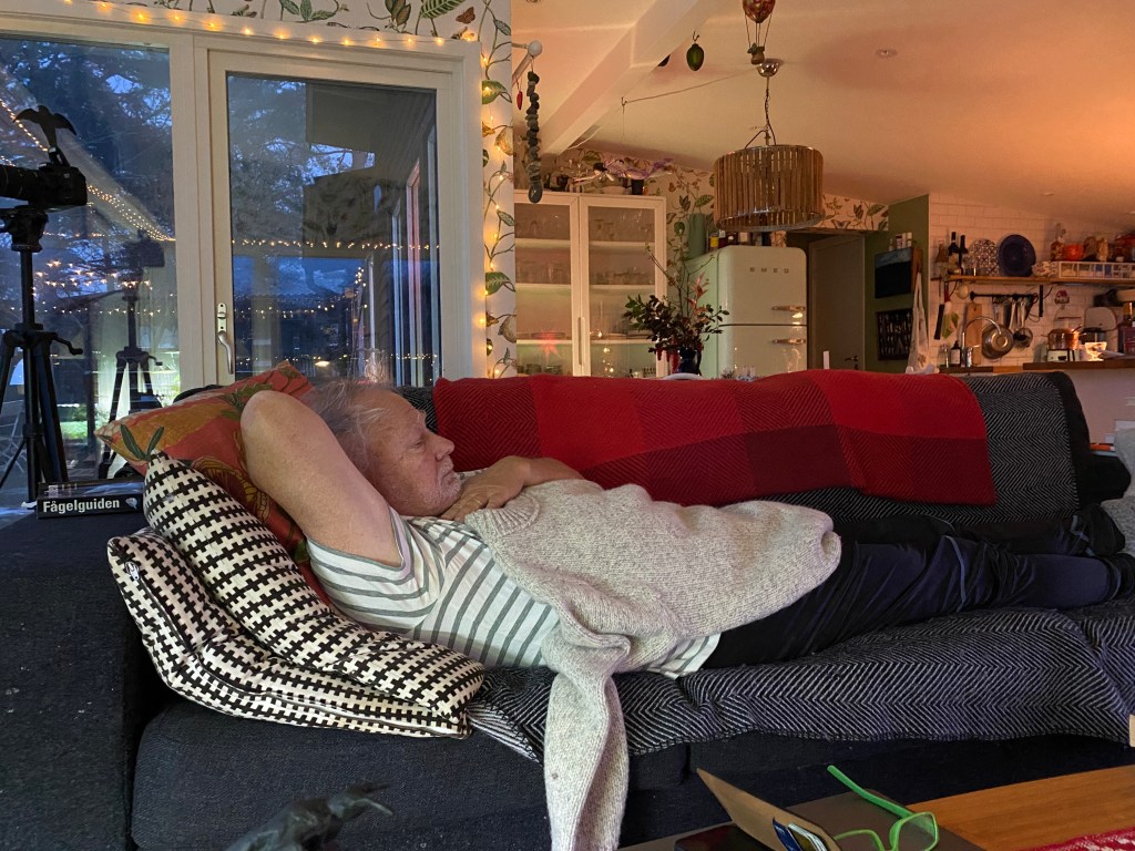 Hon: japp, två utslagna kalasfirare på varsin soffa efter att ha gått 9000 steg för att hämta vår ”kvarglömda” bil… (någon städning, vilket var dagens plan, blev det inte!)