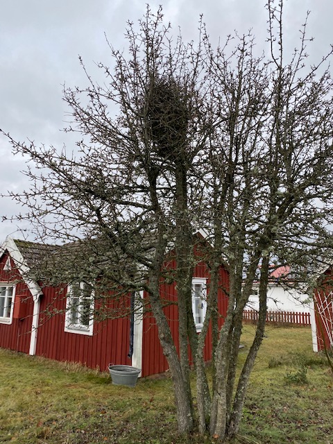 Så lyder ett axiom från den svenska folktron. Och det verkar bli en torr sommar ty vår skata har redan flyttat in i vårt soldattorp. Upptäcker hennes bo när vi idag ersatte besöket på gym (obs! ironi) med att på allvar börja tömma vårt lager. Har kört ett lass med ytterligare åtta boklådor till torpet.