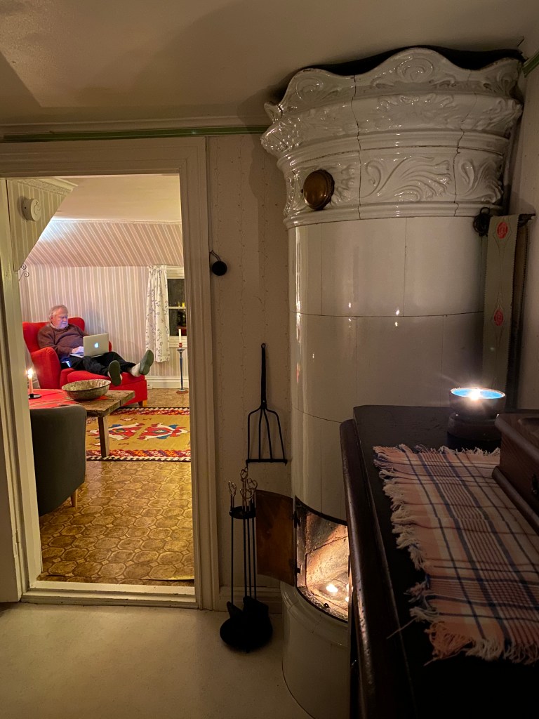 Å andra sidan har vi även gjort en första översyn av elnätet i torpet och dessutom testat att elda i kakelugnen.