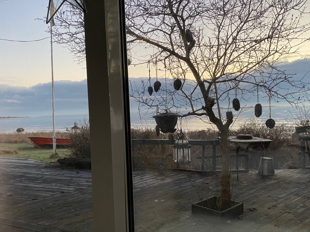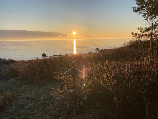Det blev en film, istället för stillbild, för att visa hela den vackra vyn och änderna som snabbt simmar ut från vår lilla vik. Så ljud på!