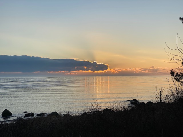 Hon: vaknar redan 6:50 av snarkningar. Ligger kvar en timme, går upp, då vaknar även snarkaren och Ludde hoppar upp i sängen och vill kela… nä nu måste matte upp och ta en bild på den vackra morgonhimlen ifrån vardagsrummet och inte bara ifrån sängen…
